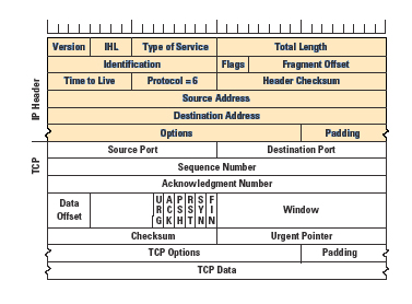 The TCP header structure, shown in Figure 1, uses a pair of 16-bit source and destination Port addresses. The next field is a 32-bit sequence number, which identifies the sequence number of the first data octet in this packet. The sequence number does not start at an initial value of 1 for each new TCP connection; the selection of an initial value is critical, because the initial value is intended to prevent delayed data from an old connection from being incorrectly interpreted as being valid within a current connection. The sequence number is necessary to ensure that arriving packets can be ordered in the sender’s original order. This field is also used within the flow- control structure to allow the association of a data packet with its corresponding acknowledgement, allowing a sender to estimate the current round-trip time across the network.