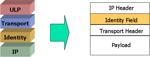 Its not quite as simple as its sounds, as there is now a need for additional signalling within the protocol stack, including explicit signalling of session start and closure from the transport layer into the identity element, as well as relevant ICMP-based signals from the IP layer. The advantage of this type of approach is that the incremental change to the protocol is relatively minor, and in terms of implementation there is the potential to insert this element into an implement with relatively small impact on the remainder of the code.