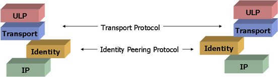 Another approach is to allow the identity stack element to communicate using a separate communications channel, where the identity element generates dedicated messages that are directed to its peer, and passes these PDUs to the LLP independently of the PDUs that are passed to the identity protocol element from the ULP. This allows the identity element to exchange information and synchronize state with the remote identity element semi-independently of the ULP protocol exchange. As a part of the identity function is to transform the ULP PDU to include locator information, there is an associated requirement to ensure that the identity peering state remains synchronized to the exchange of ULP PDUs, so that the remote identity element can correctly recognize the locator to endpoint mapping for each active session.