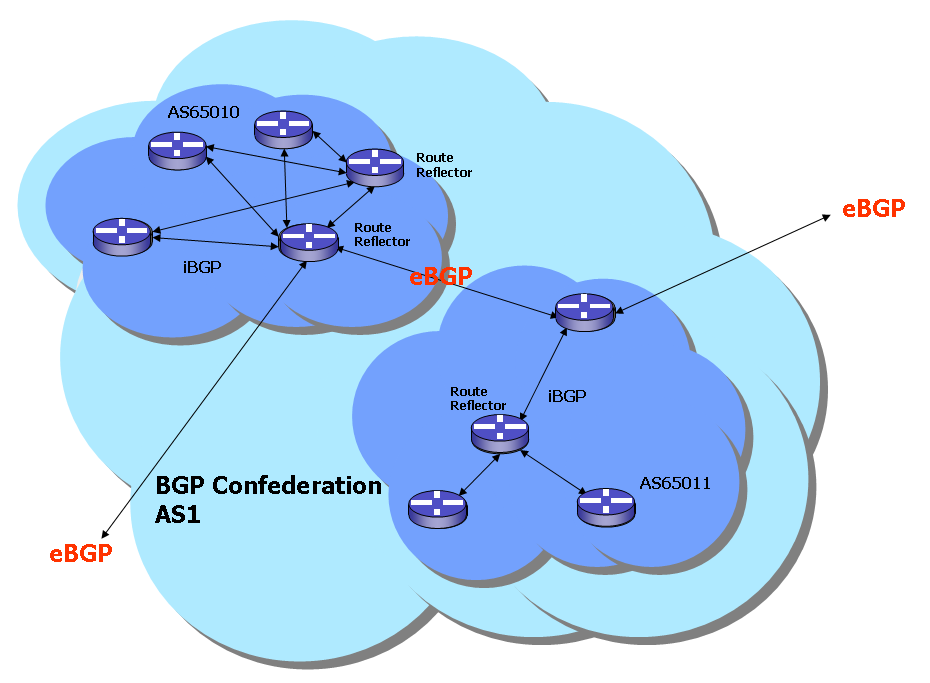 Figure 9. iBGP route reflectors and BGP confederations.